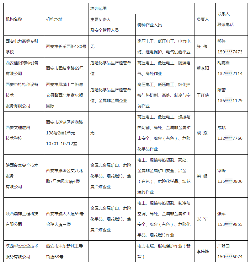 陜西省安全生產(chǎn)培訓機構(gòu)基本信息(7家)