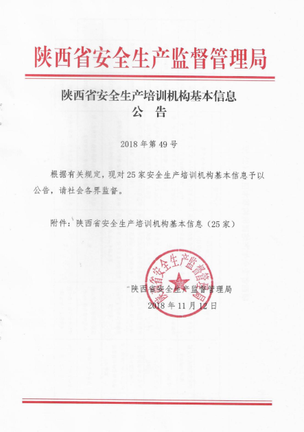陜西省安全生產監督管理局公告2018年第49號