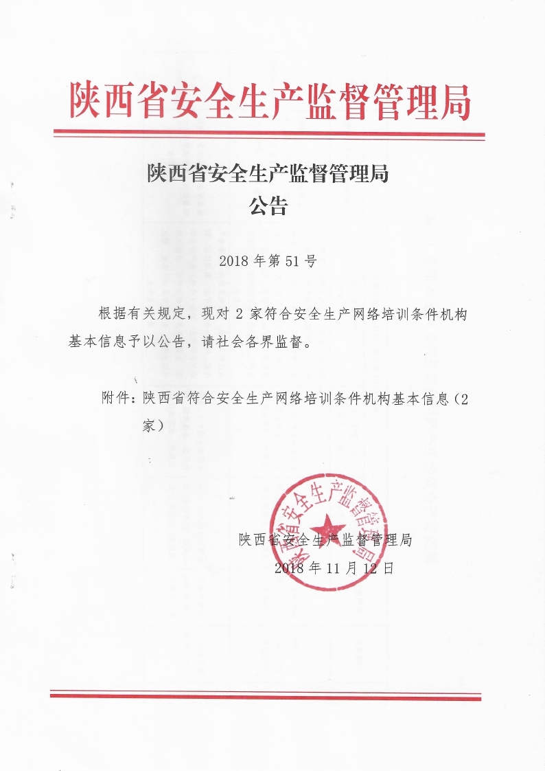 為進一步加強注冊安全工程師隊伍管理,提高注冊安全工程師專業(yè)素質(zhì)和執(zhí)業(yè)能力,根據(jù)《注冊安全工程師管理規(guī)定》和陜西省應(yīng)急管理廳注冊安全工程師注冊規(guī)定,陜西鼎祥工程科技有限公司【陜西省安全生產(chǎn)監(jiān)督管理局公告(2018年第51號)】決定舉辦注冊安全工程師繼續(xù)教育網(wǎng)絡(luò)培訓(xùn)班。現(xiàn)將有關(guān)事項通知如下: